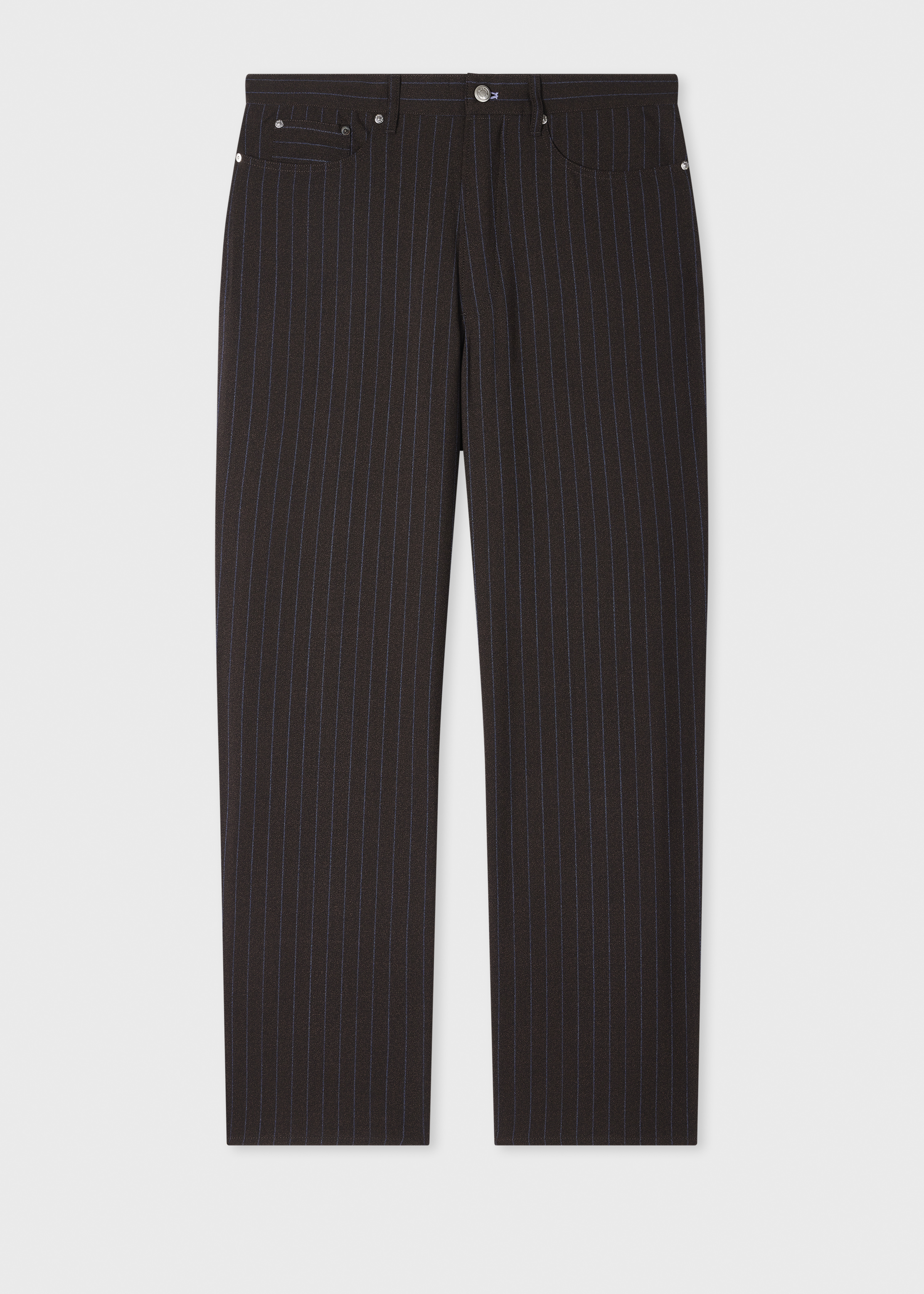 Brown Pinstripe Wool Five-Pocket Trousers
