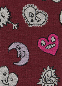 Made in Italy from a cotton-blend for added stretch these burgundy socks feature the seasonal 'Heart and Stars' pattern. Complete with a block colour heel, toe, and rib detailing. These colourful socks are a perfect addition to any outfit. Product Code: M1A-800MO-U914-28