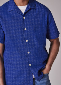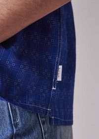 Made from a lightweight cotton dobby, this blue short-sleeve shirt showcases a fine 'Geometric' print for a unique touch. Cut to a casual fit, this shirt is complete with tonal buttons and subtle branded detailing. 100% Cotton Machine washable The Fit Classic-Fit, also known as Casual-Fit, is relaxed through chest and wider towards the hem. Product Code: M2R-695U-T22399-49