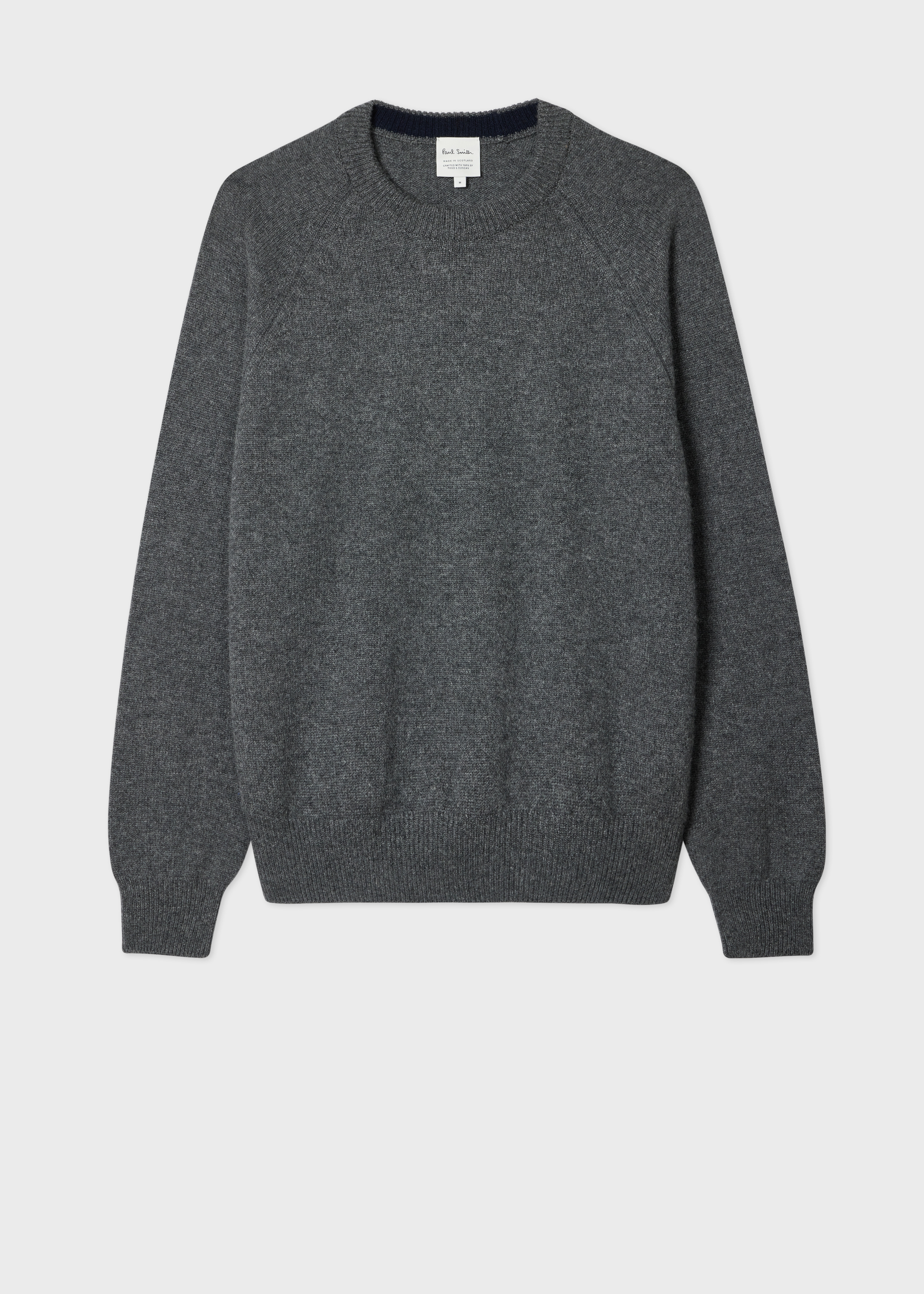 Crafted from luxurious cashmere yarn spun and dyed by the renowned Todd & Duncan mill in Scotland, this seamless charcoal crew neck sweater features an 8-gauge knit and contemporary raglan sleeves. Wear it on its own or layered over a shirt or T-shirt to elevate your look. The Fit - Regular-Fit is relaxed through the body. Product Code: M1R-752Z-R02914-76