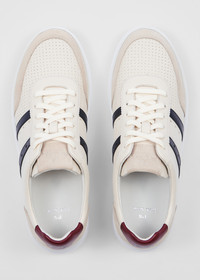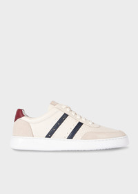 Made from premium leather uppers with a rubber cupsole for comfort, these cream 'Birch' trainers feature tonal suede heel and toe. Ideal for everyday wear, these trainers are finished with navy side stripe detailing. Product Code: M2S-BCH05-TLEA-02