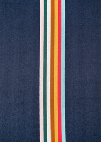 Made from a virgin wool-blend, this dark blue, lightweight, herringbone scarf features a woven multi-stripe design, incorporating our timeless Paul Smith signature into this transitional piece. Size: 180cm x 30cm 82% Virgin Wool, 18% Viscose Dry Clean Only Product Code: M1A-150C-J324-47