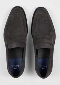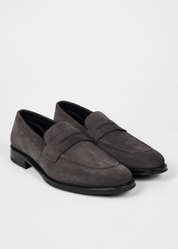 Made from premium suede uppers, these dark grey 'Pierce' loafers feature a classic design with moccasin toe and stitched saddle with cut out detail. Finished with rubber soles with zebra insert for added comfort. 100% Leather Uppers 100% Rubber Soles Product Code: M2S-PCE03-PSUE-70