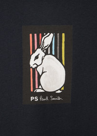 Dark Navy Cotton 'Rabbit Stripe' Print T-Shirt