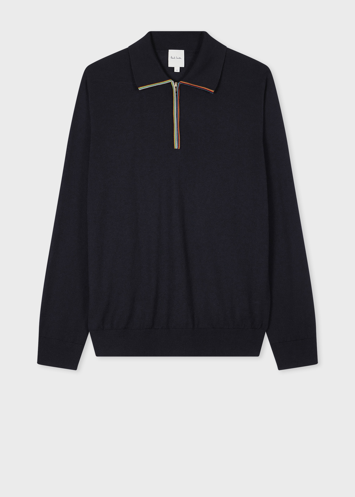 Crafted from a rich merino wool composition this long sleeve polo features the staple 'Signature Stripe' tipping to the collar and a branded gold hardware zip neck fastening. This lightweight knit is complete with tonal stitching and ribbed trims, making it the perfect transitional number. 100% Merino Wool Machine Washable The Fit Regular-Fit is relaxed through the body. Product Code: M1R-249Z-P02094-49B
