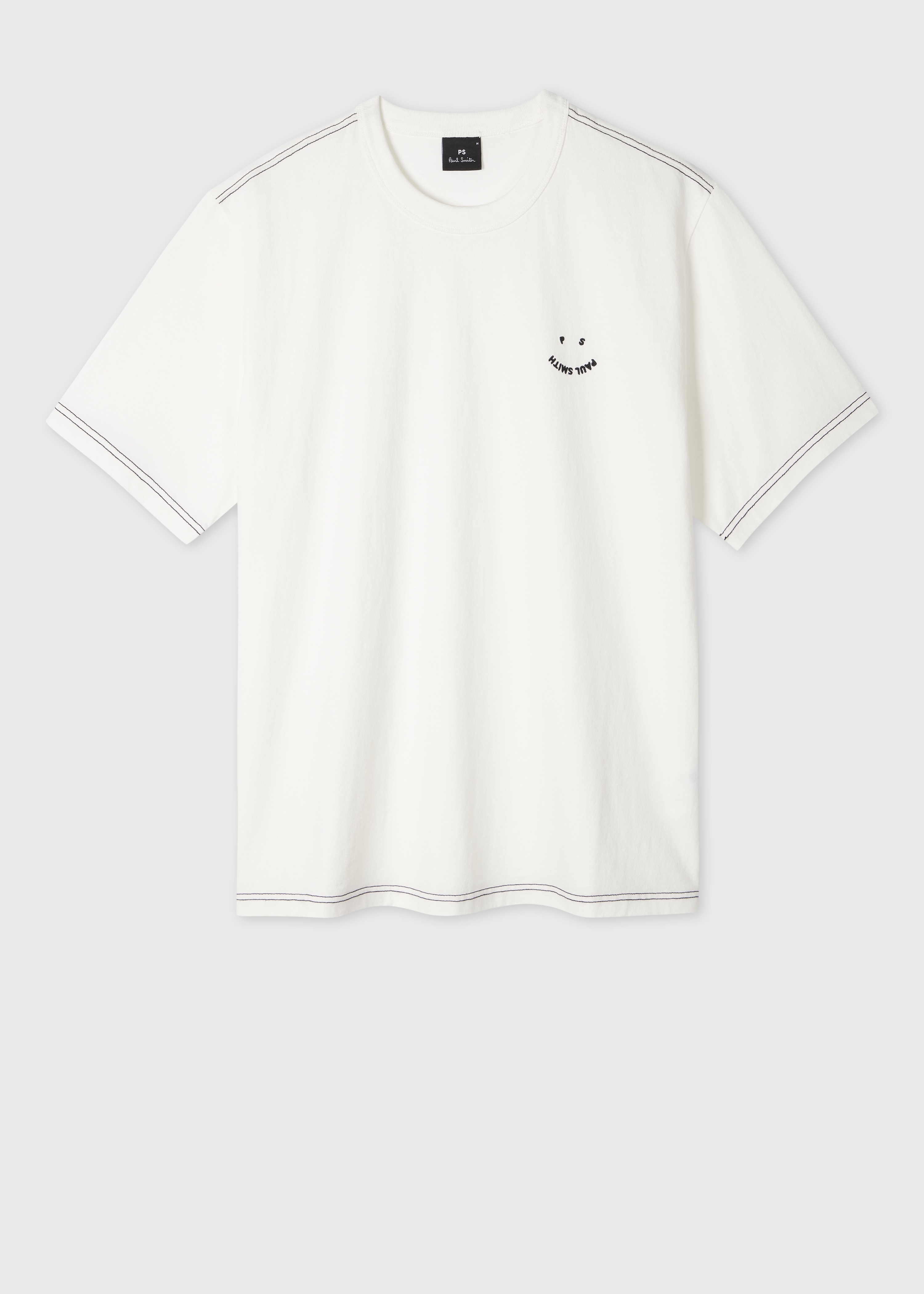 Made from 100% cotton with a pigment dyed ecru finish, this crew neck T-shirt features an embroidered 'Happy' logo on the chest. Cut for an oversized fit, this T-shirt is finished with contrast stitching for an added twist. The Fit - Oversized Product Code: M2R-204ZE-T22387-02