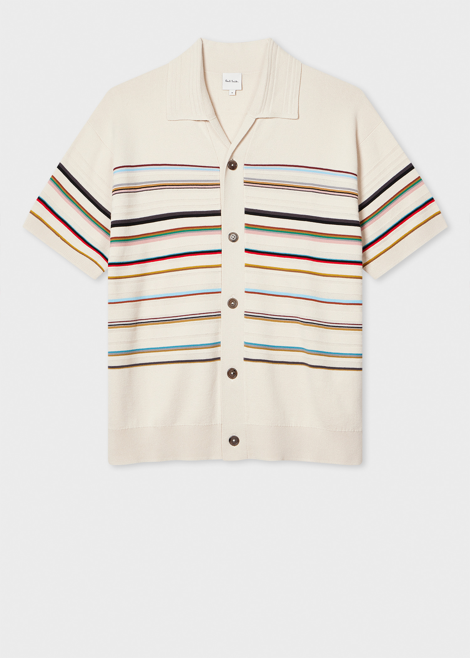 Ecru 'Signature Stripe' Knitted Cotton Short-Sleeve Shirt