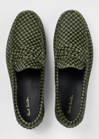 Made in Portugal from calf leather with a textured pony skin finish, these statement 'Lido' loafers feature a green and black houndstooth check pattern. Complete with a cushioned insole for comfort and black leather soles with an embossed flower motif. Product Code: M1S-LID14-TPNY-30