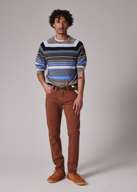 Crafted from premium merino wool, this grey and blue-toned crew neck sweater features a distinctive contrast stripe design. Complete with a ribbed collar, cuffs and waistband for a comfortable fit. The perfect versatile piece for your smart-casual wardrobe. The fine-quality wool ensures warmth and comfort, making it an essential addition to your seasonal wardrobe. 100% Merino Wool Dry clean only The Fit Regular-Fit is relaxed through the body. Product Code: M2R-472Z-T22439-73