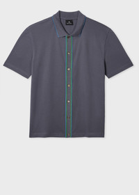 Grey Button-Front Stretch-Cotton Polo Shirt
