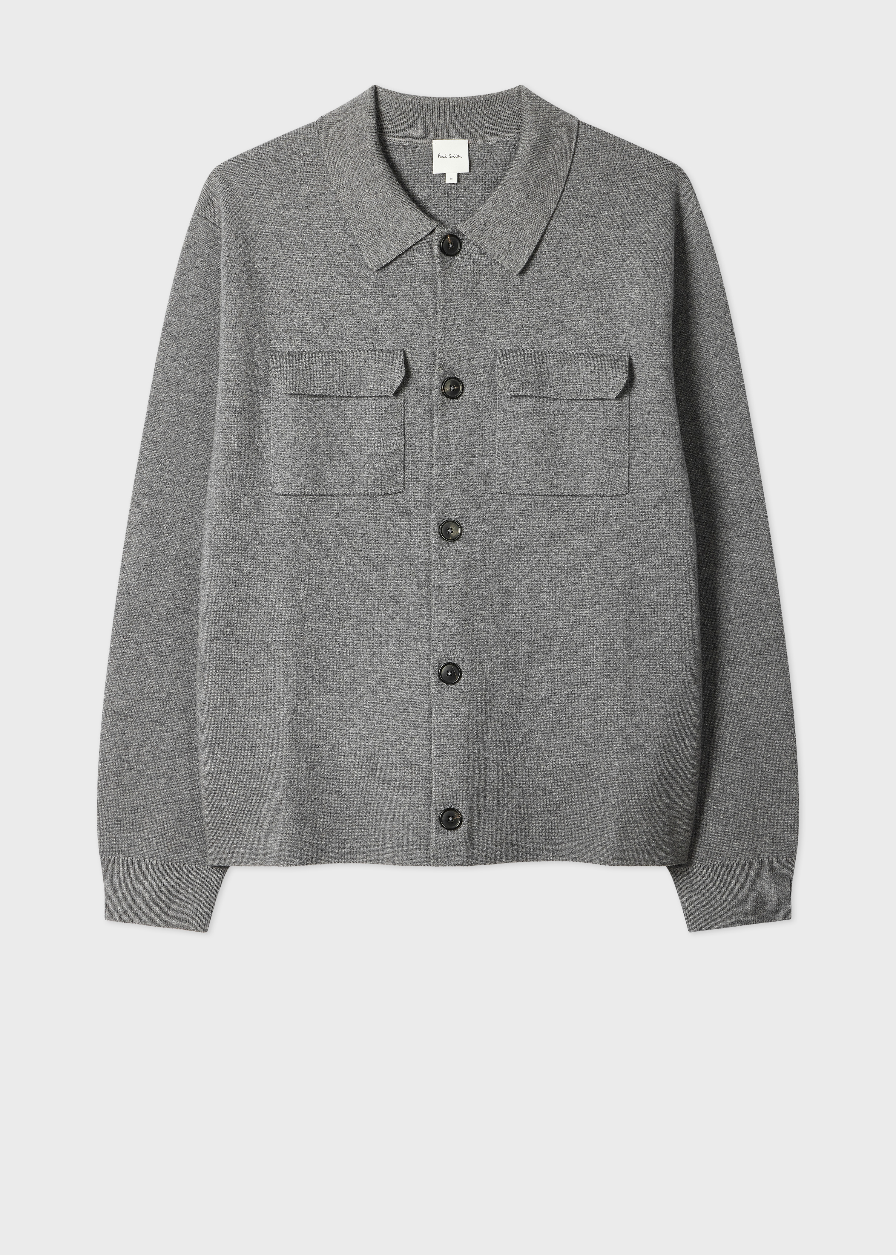 Grey Merino-Cotton Patch-Pocket Cardigan