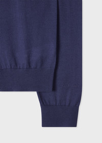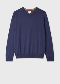 Made from a lightweight and breathable Merino wool with a soft handle finish, this indigo crew neck sweater features our classic 'Signature Stripe' internally on the collar. Finished with tonal ribbed shoulder seams and a tonal signature logo embroidered on the cuff. The Fit - Regular-Fit Product Code: M1R-238Z-P02093-59A