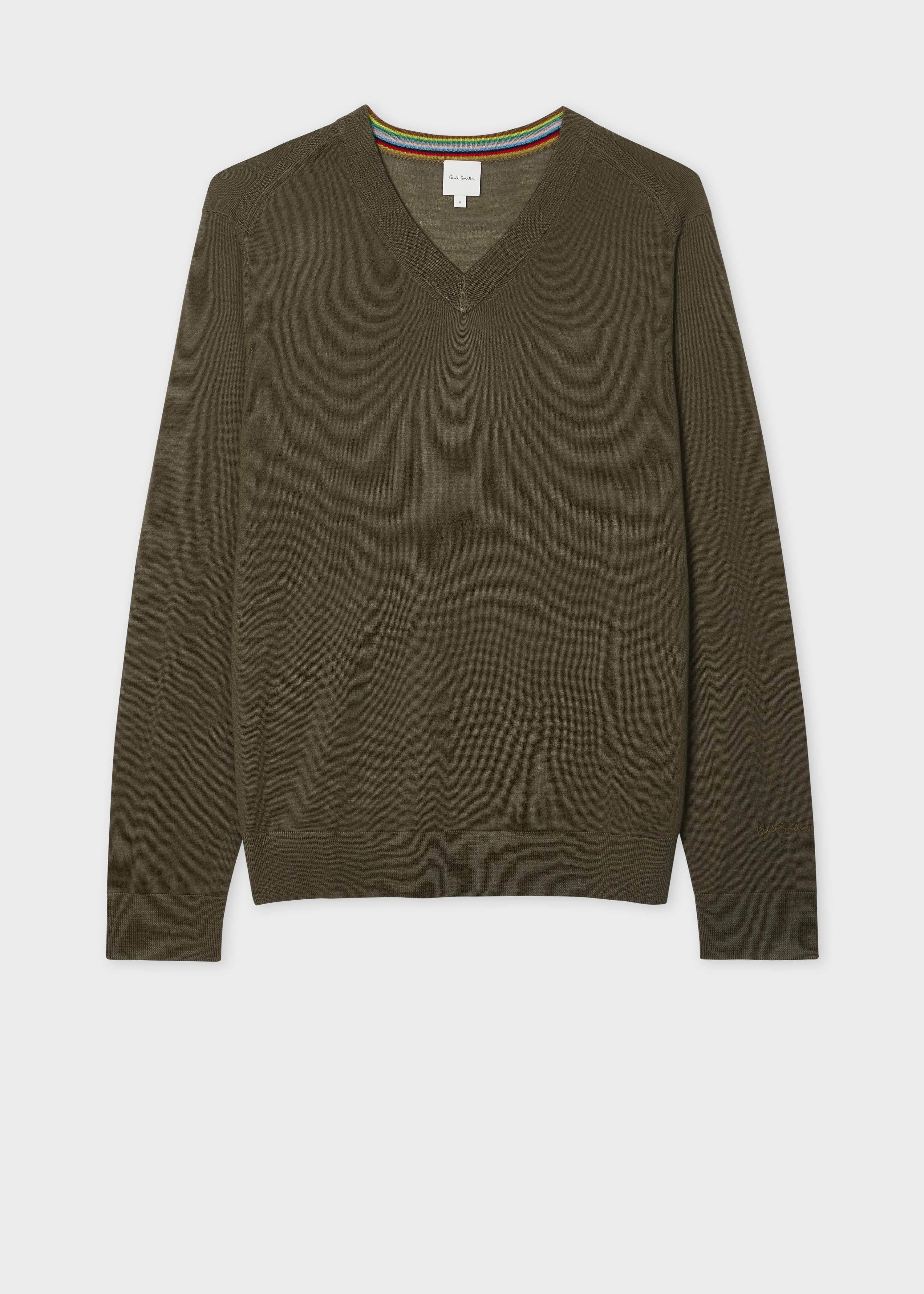 Made from 100% Merino wool for a soft and breathable finish, this khaki sweater features a classic V-neck design. Complete with our signature logo embroidered on the cuff and 'Signature Stripe' internal collar trim. The Fit - Classic-Fit Product Code: M1R-242Z-R02093-63