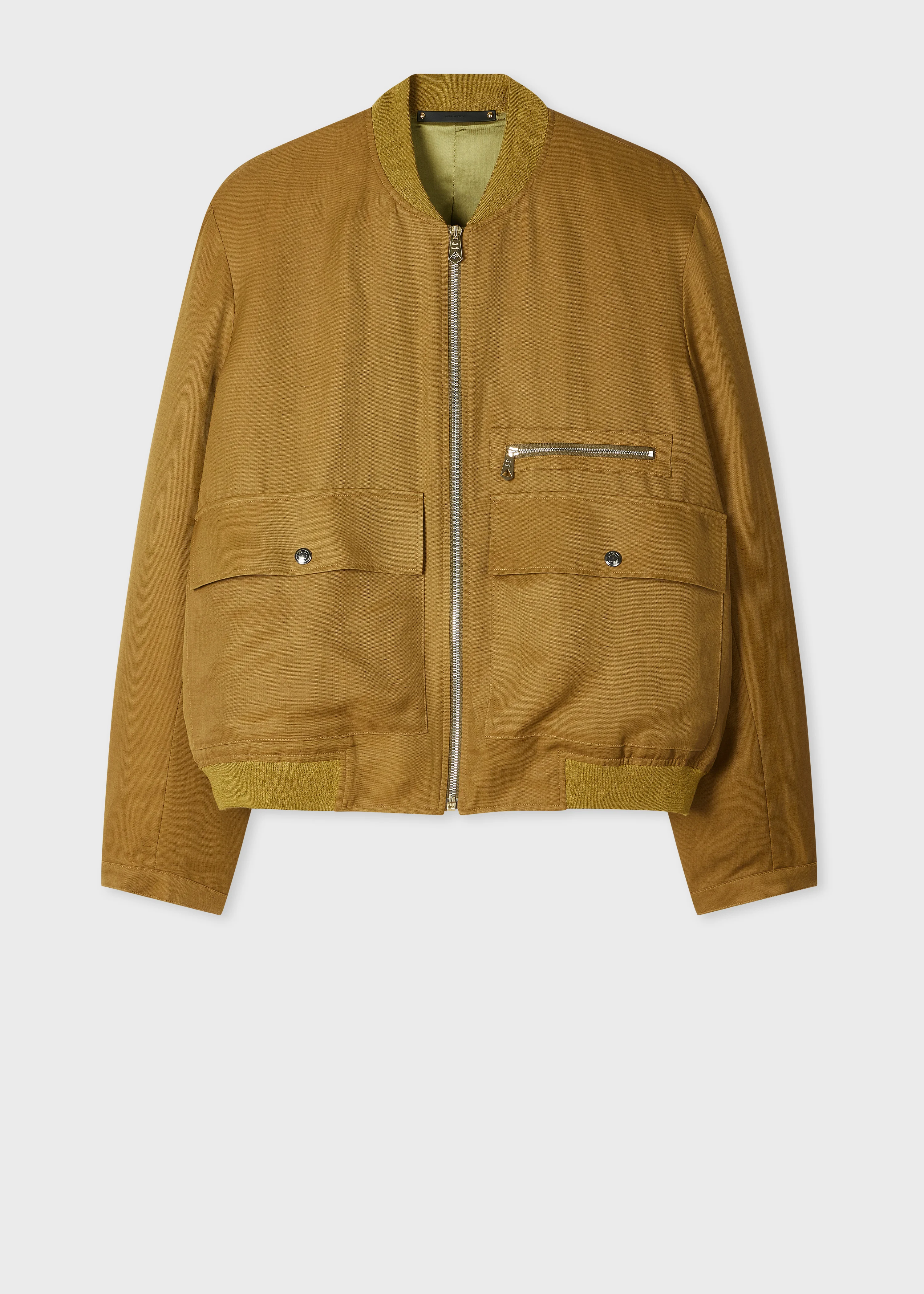 Crafted in Italy from a premium viscose and linen-blend for a lightweight and breathable finish, this khaki bomber jacket features a timeless design. Complete with two large pockets for added practicality, this jacket is finished with a full lining for comfort. The Fit - Regular-Fit Product Code: M1R-915Z-V03012-62