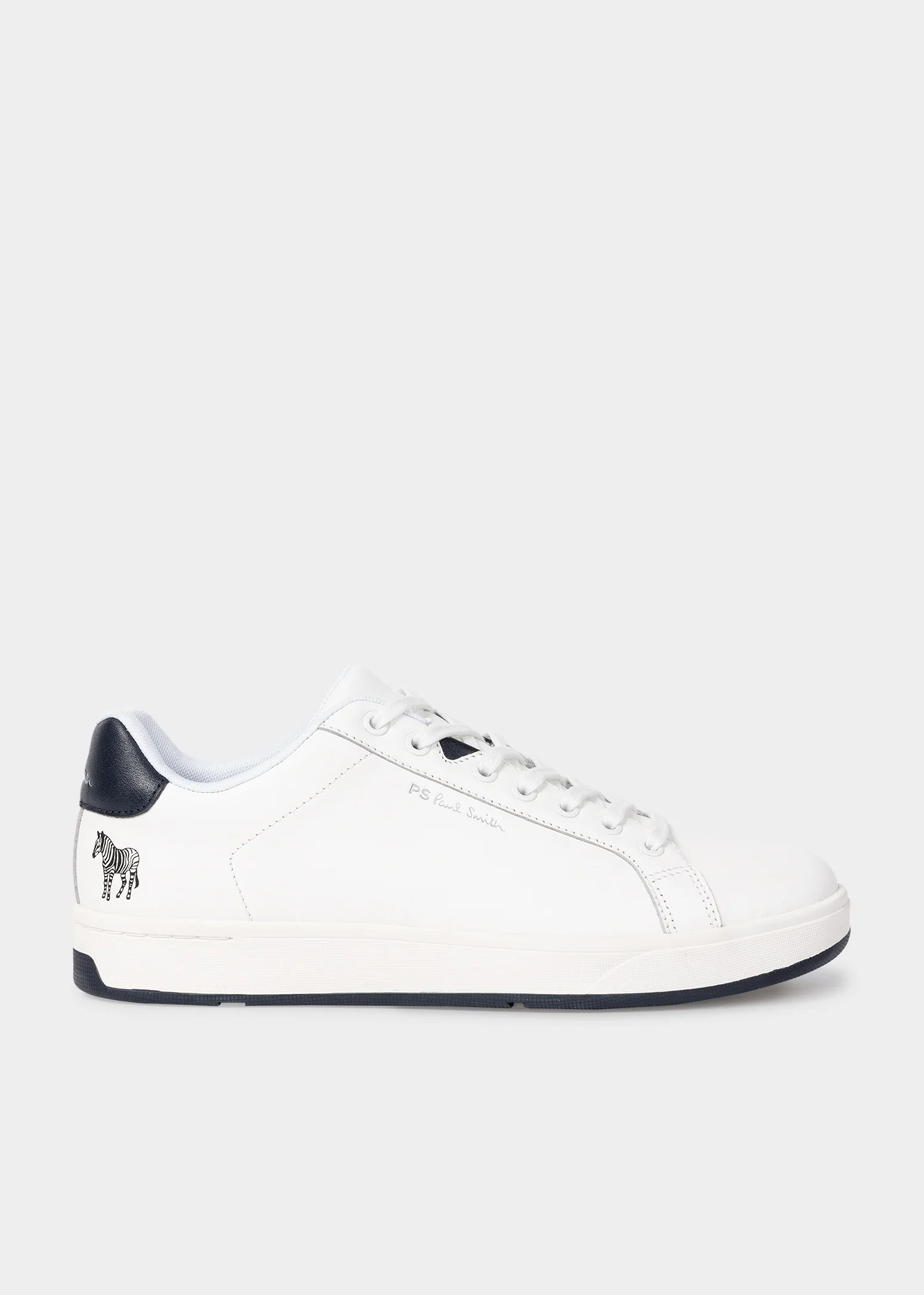 Made from premium leather uppers, these white 'Albany' trainers feature a timeless design. Complete with our classic zebra logo printed at the heel, these trainers are finished with contrast leather heel panels and rubber cupsoles. 100% Leather Uppers 100% Rubber Soles Product Code: M2S-ALY01-MCAS-01