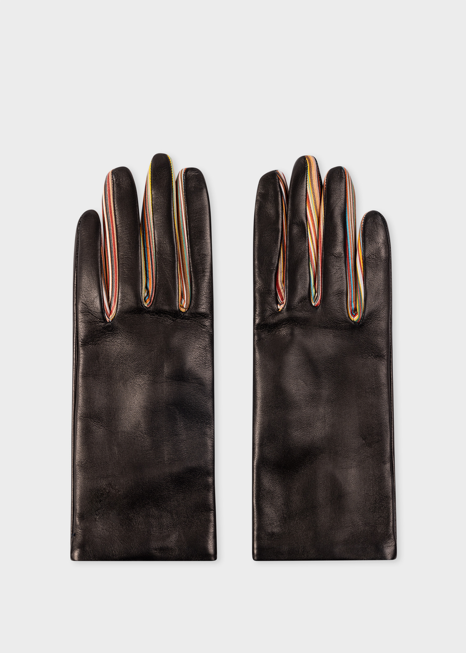 Crafted in Italy from premium lamb leather, these timeless black gloves feature a concertina 'Signature Stripe' trim - adding a pop of colour to this classic style. 100% Lamb Leather Made in Italy Product Code: W1A-430GL-L659-79