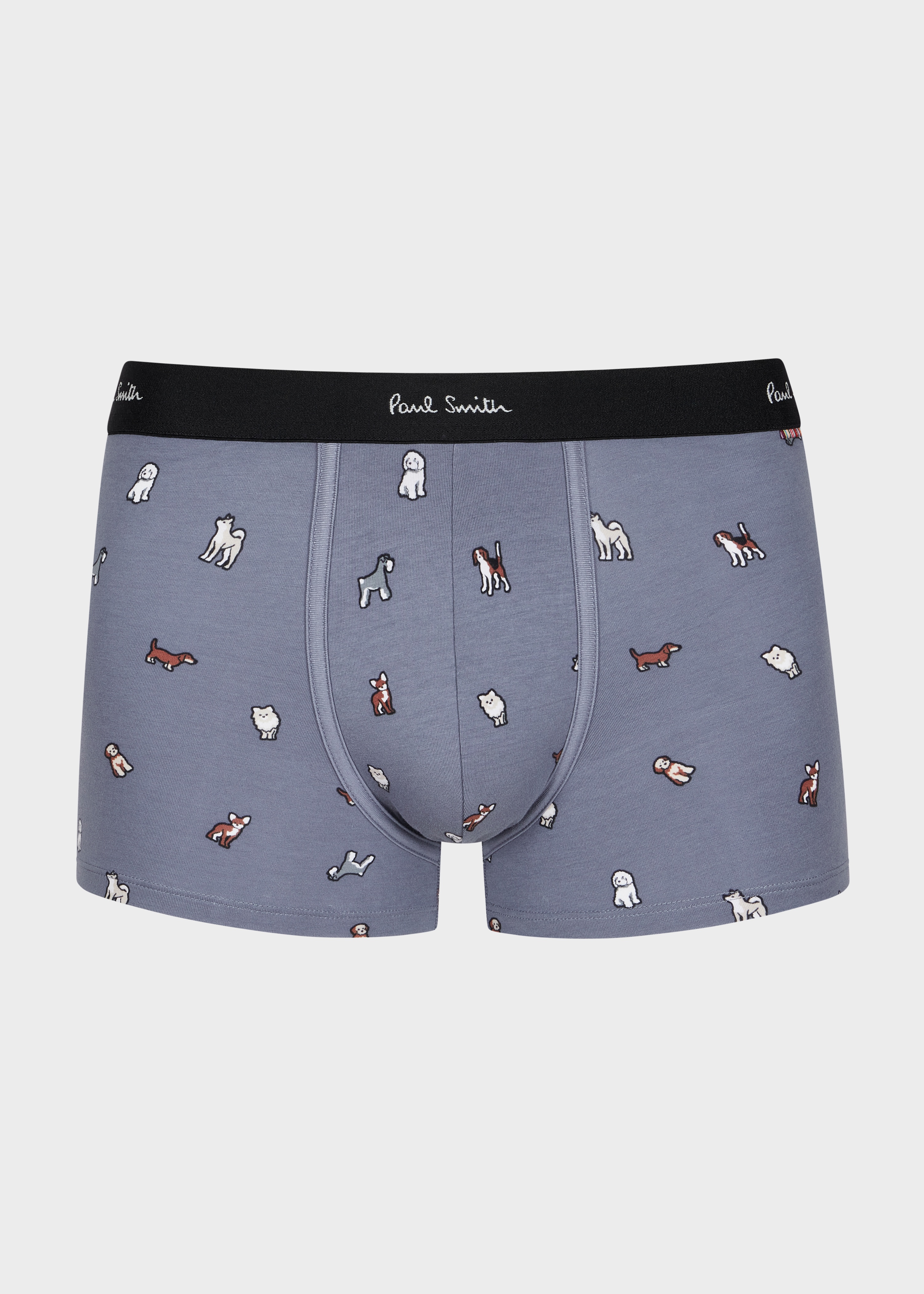 Made from soft cotton-blend fabric for comfort and stretch, these light blue boxer briefs feature a playful 'Japan Dogs' print inspired by Japanese dog breeds. Designed with a comfortable elasticated waistband for a secure fit. The Size Sizing guide (to fit waist) S - 30-32";; / 76-81cm M - 32-34";; / 81-86cm L - 34-36";; / 86-91cm XL - 36-38";; / 91-97cm XXL - 38-40";; / 97-103cm Product Code: M1A-459B-TU566-43