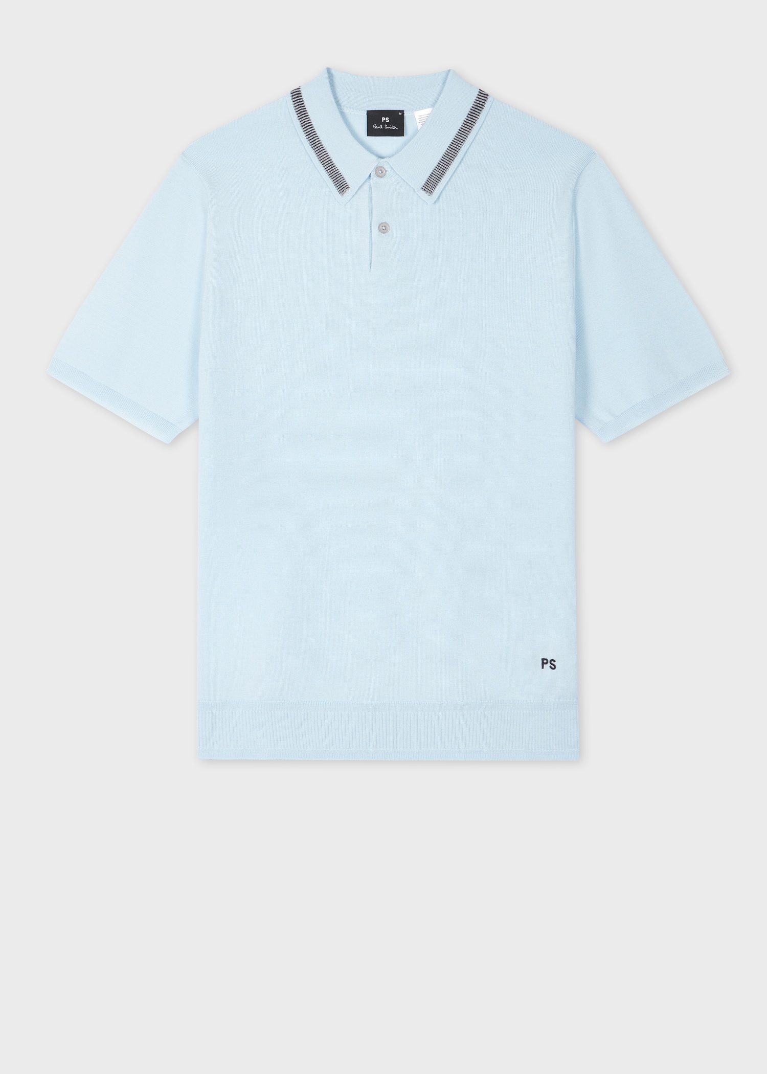 Made from 100% Merino wool for a soft and breathable finish, this knitted polo shirt features a classic light blue tone. Complete with a two-button placket and contrast stripe collar detail. 100% Merino Wool Hand wash The Fit Regular-Fit Product Code: M2R-325Z-P21861-40