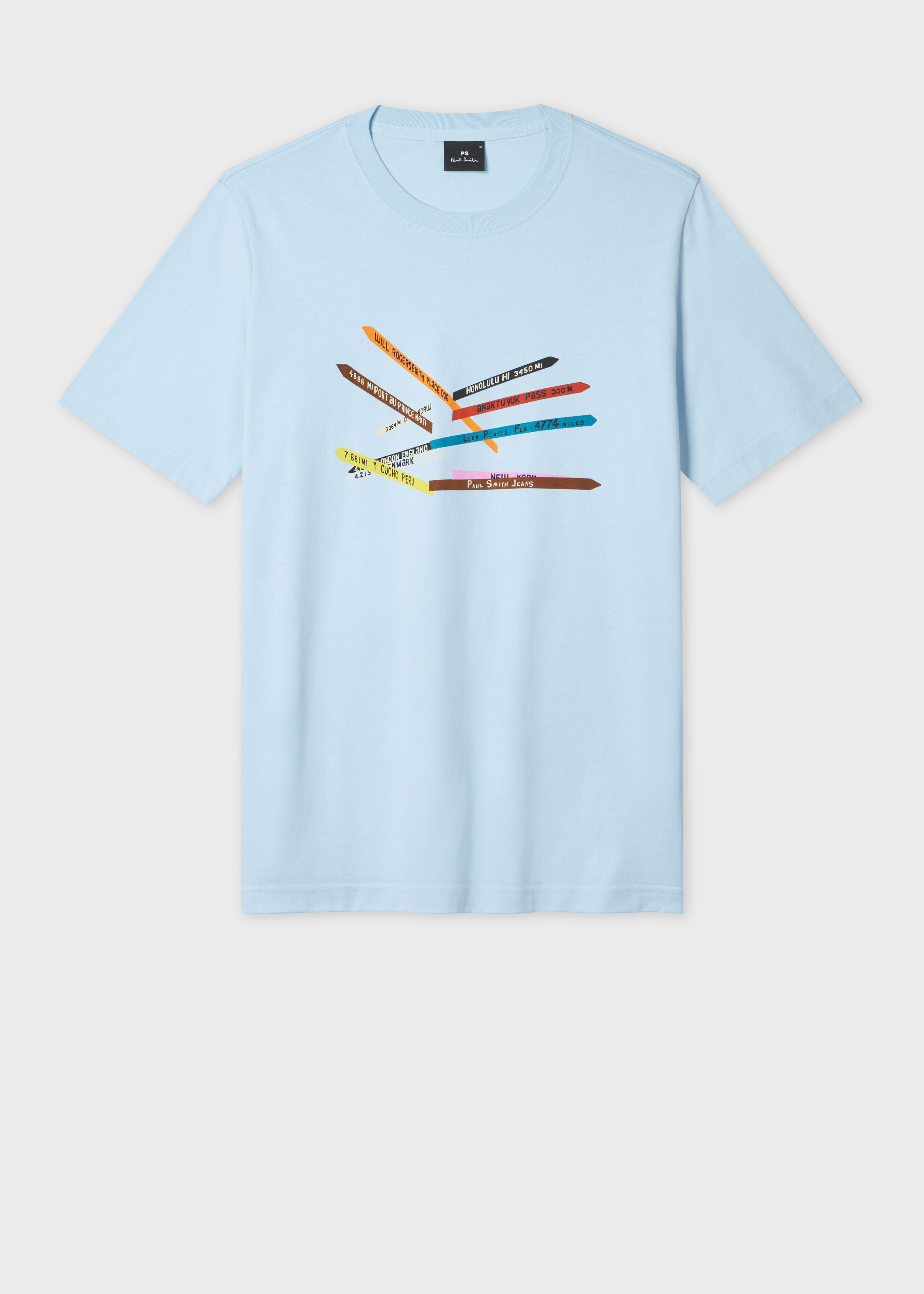Made from organically grown cotton, this light blue crew neck T-shirt features a 'Sign Posts' print taken from the archives. Cut for a regular-fit, this T-shirt is finished with a ribbed collar. The Fit - Regular-Fit is relaxed through the body. Product Code: M2R-011R-TP7744-41E