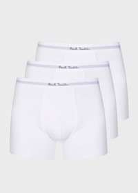 Made from a soft organic cotton with stretch for comfort, this three pack of long white boxer briefs are finished with a Paul Smith signature logo waistband and presented in an 'Artist Stripe' box. Product Code: M1A-480E-M3PK-01