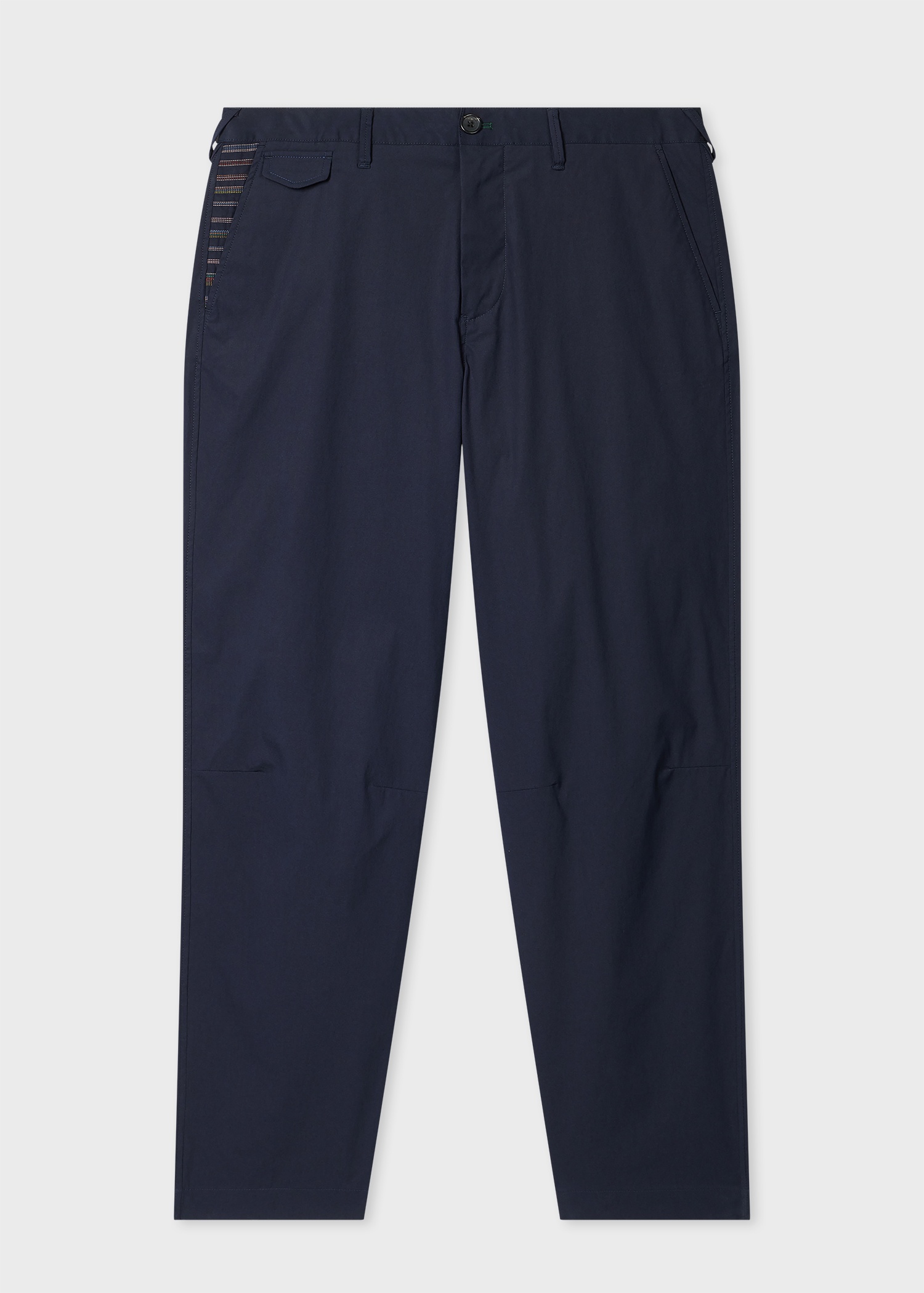 Crafted from a rich cotton-blend, these navy chinos are cut to a mid-fit and feature an embroidered stripe design to the pocket for a refined touch. A staple for any wardrobe, these chinos will elevate your everyday attire. The Fit - Mid-Fit Product Code: M2R-769Y-T21951-49