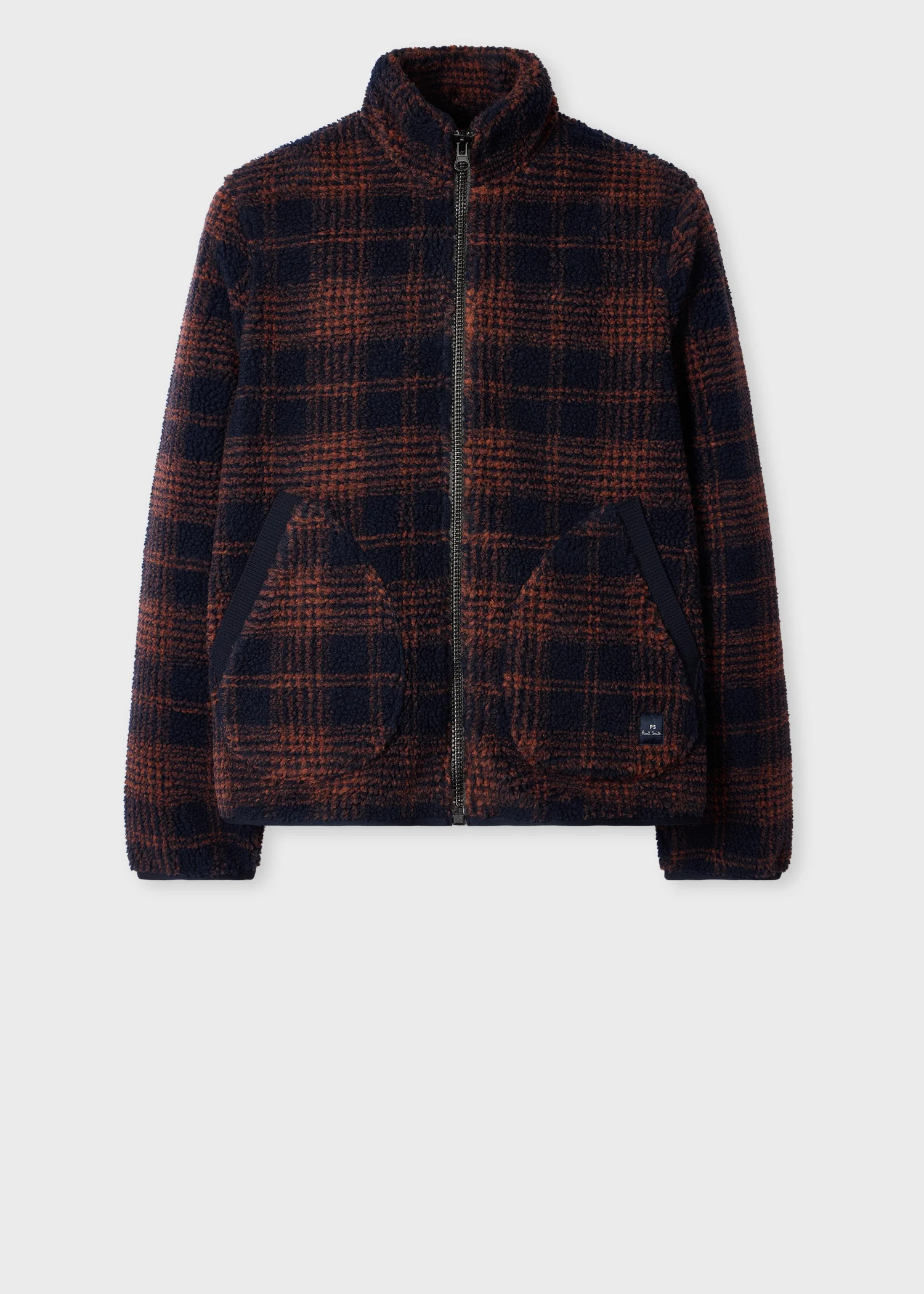 Made from 100% polyester fleece with a warm, textured finish, this jacket features a navy base with an orange check pattern. Complete with a full zip closure and funnel neck for protection from the elements, this jacket is finished with two patch pockets with rib-knit trim and grosgrain bound cuffs and hem. The Fit - Regular-Fit Product Code: M2R-665Z-V22545-49