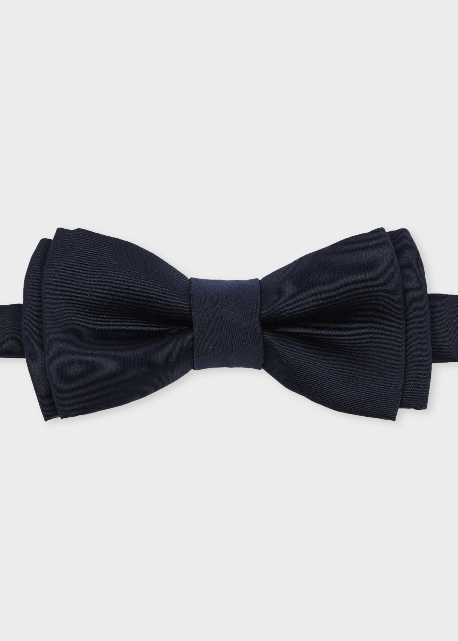 Crafted in Italy, this navy blue bow tie is pre-tied for convenience and finished with a hook-and-eye fastening. Made from a satin composition, it is the ideal finishing piece for any formal occasion. 100% Polyester Made in Italy Product Code: M1A-WBOW-P00101-49