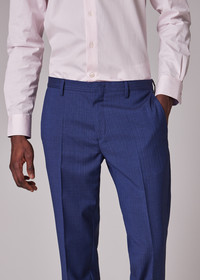 Crafted from premium wool, these navy blue trousers feature a micro check pattern throughout. Designed with cuffed hems, these versatile trousers can be styled with both casual and formal pieces. Dry clean only The Size Model wears a size 32 Model measures: Height 6’2½’’ / 189cm | Chest 33’’ / 84cm | Waist 31’’ / 79cm The Fit Regular-Fit is relaxed through the body Product Code: M1R-150M-T02716-47