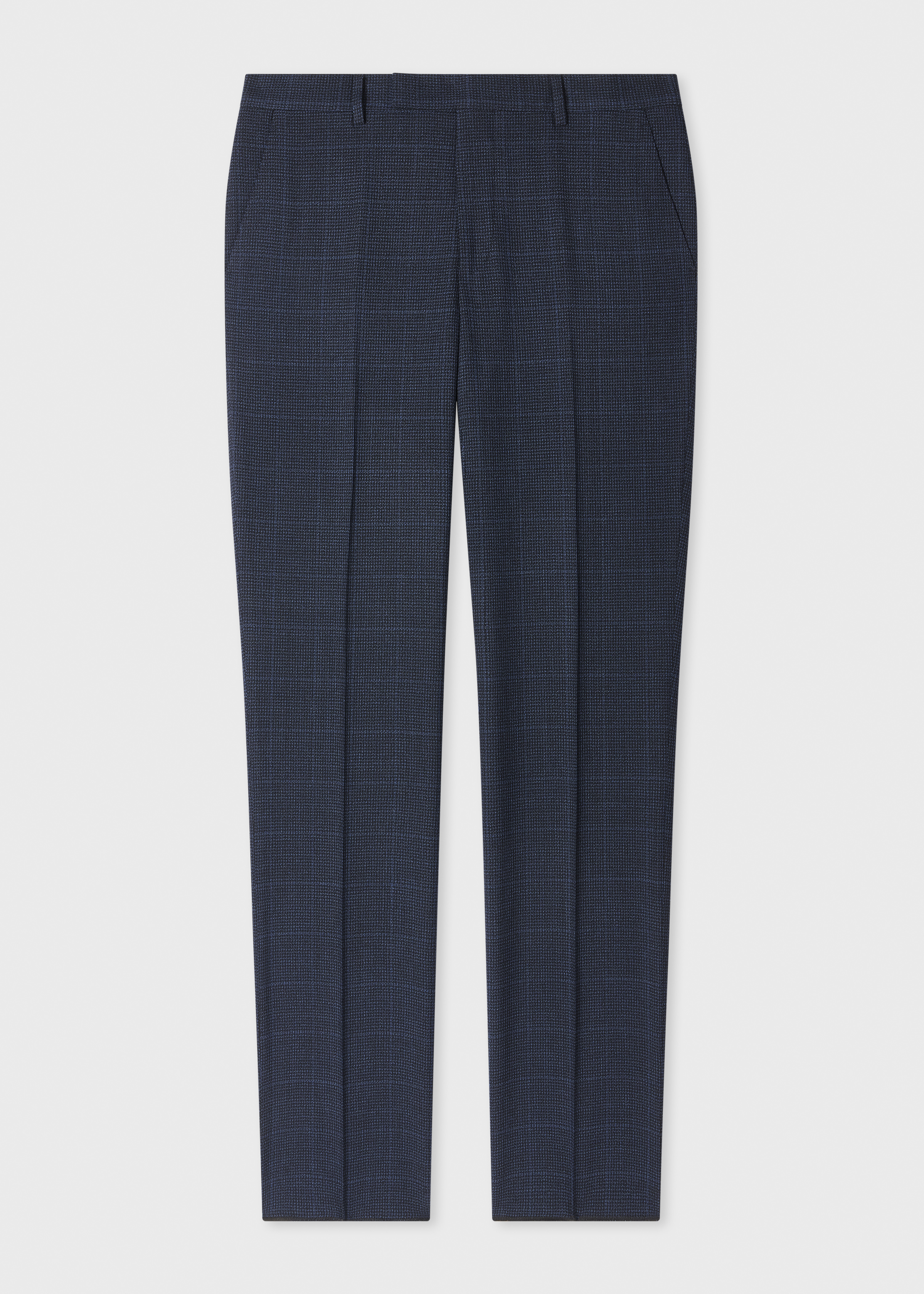 Navy Check Stretch-Wool Trousers