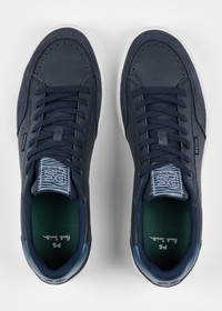 Made from premium leather uppers, these navy 'Hillstar' trainers feature tonal suede trims and perforated side and toe stripes. Complete with rubber cupsoles with 'Sports Stripe' trims - these trainers are ideal for everyday wear. Product Code: M2S-HLS13-TLEA-49