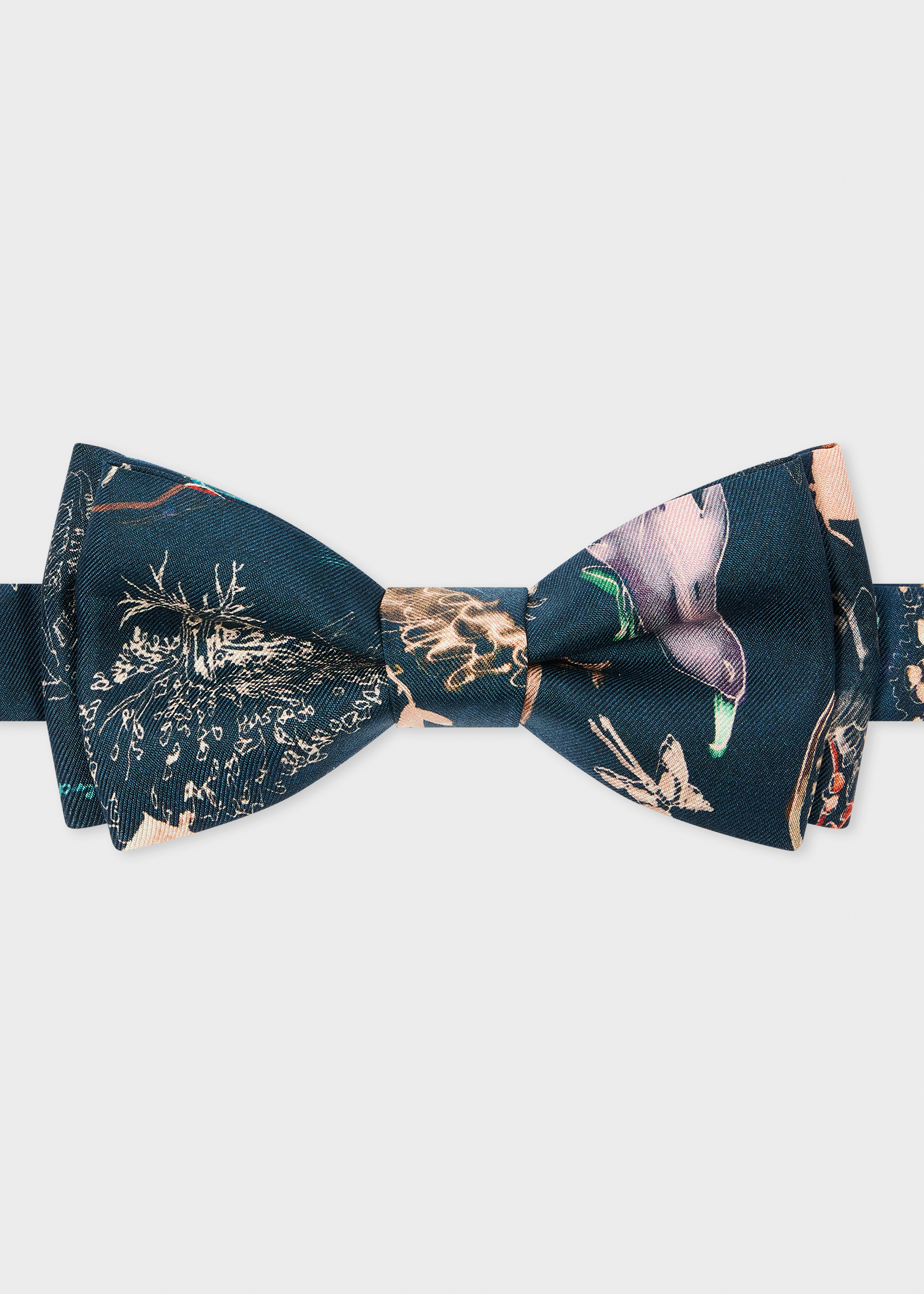 Made in Italy from 100% silk, this navy pre-tied bow tie features an all-over 'Little Beasts' print. Ideal for adding a pop of colour and pattern to a formal outfit. Product Code: M1A-WBOW-TT400-49