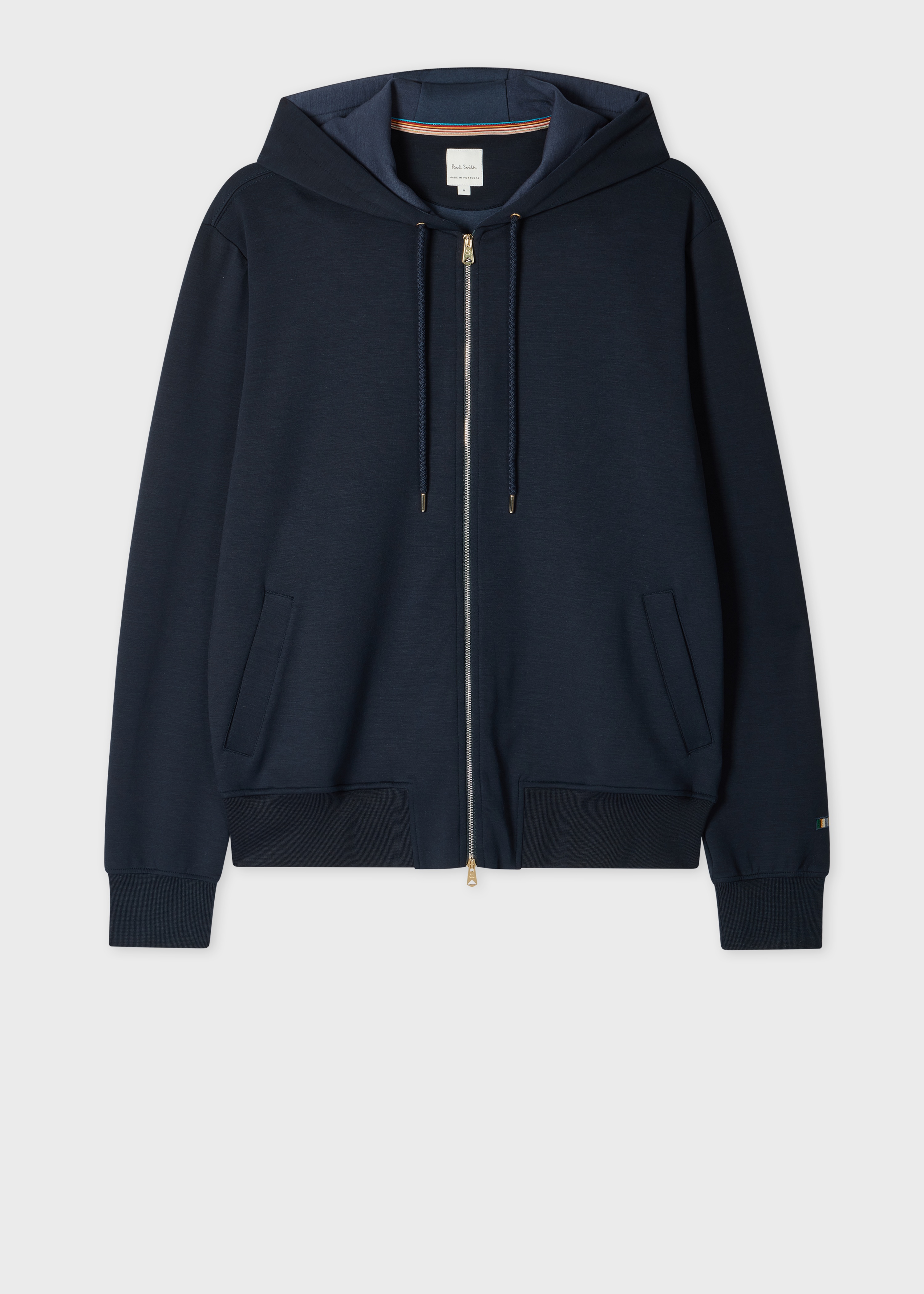 Made from a soft-finish lyocell and cotton-blend with stretch for added comfort, this navy hoodie features a classic zip-front design. Ideal for everyday wear, this hoodie is finished with two front welt pockets and an embroidered 'Signature Stripe' motif on the sleeve. The Fit - Regular-Fit is relaxed through the body. Product Code: M1R-611Z-TP4724-47
