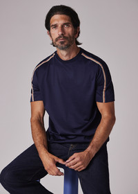 Navy Mercerised Cotton 'Signature Stripe' Shoulder Trim T-Shirt