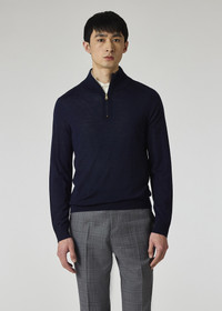 Made from 100% Merino wool for a lightweight and breathable finish, this navy sweater features a half-zip funnel neck design. Complete with internal 'Signature Stripe' trim, this sweater is finished with a tonal signature logo embroidered on the cuff. 100% Merino Wool Hand wash The Fit Regular-Fit Product Code: M1R-239Z-P02093-49