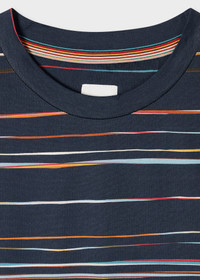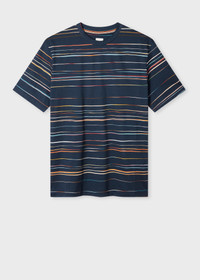 Made in Portugal from a premium 100% cotton, this navy T-shirt features a 'Signature Pinstripe' pattern throughout. Ideal for everyday wear, this T-shirt is finished with a classic crew neck. 100% Cotton Machine washable Made in Portugal The Fit Regular-Fit is relaxed through the body. Product Code: M1R-919T-TP5185-49
