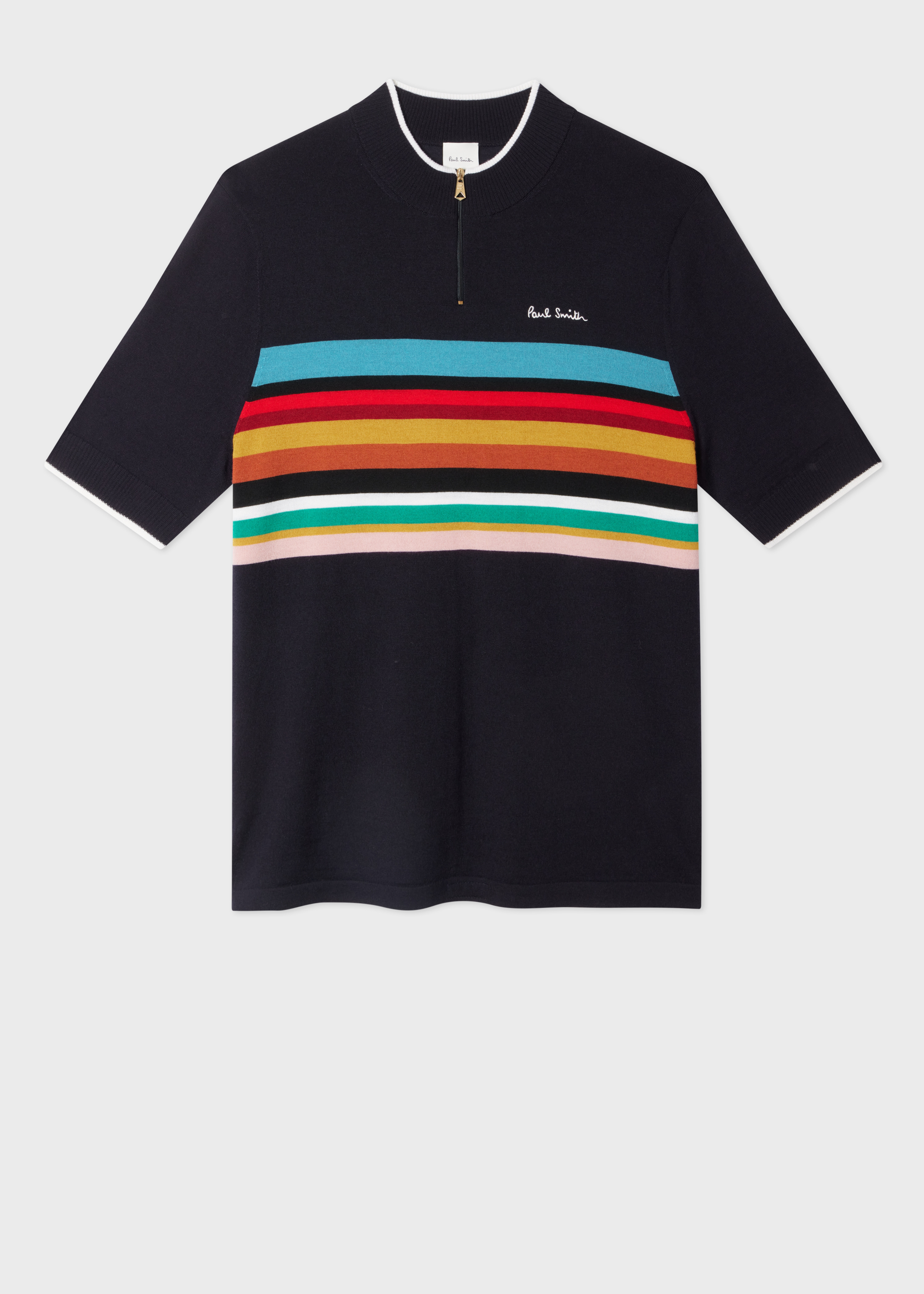 Made from 100% soft merino wool, this sweater features a cycle jersey-inspired silhouette. Complete with a 'Signature Stripe' pattern across the front and embroidered signature logo, this knitted top is ideal for casual and smart-casual styling. The Fit Regular-fit is relaxed through the body Product Code: M1R-528Z-T02882-49