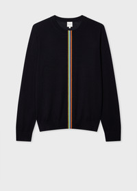 Crafted from rich merino wool, this navy sweater offers exceptional comfort with a luxuriously soft feel. The classic-fit design ensures a timeless silhouette that works perfectly for both casual and smart-casual occasions. Complete with 'Signature Stripe' detail through the chest, this versatile knitwear piece will add a refined touch to your layering wardrobe. The Fit - Classic-Fit Product Code: M1R-541Z-T02094-49B