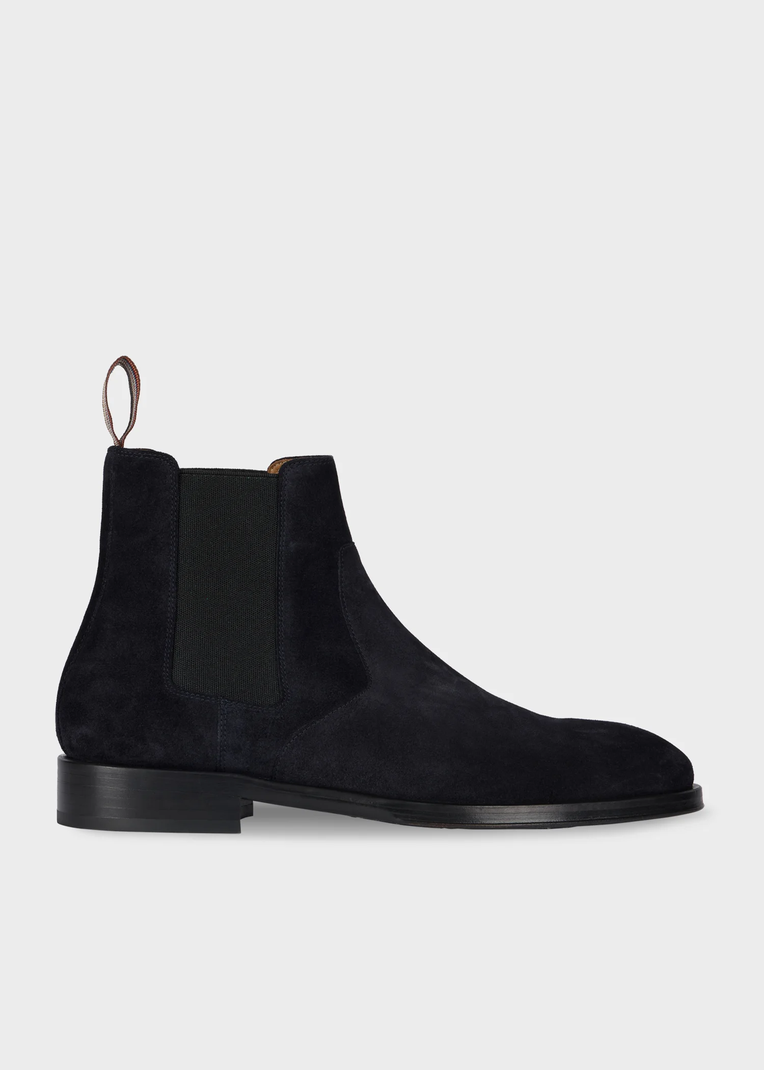 Crafted from a suede upper with elasticated side gore inserts for extra comfort, these navy 'Lawson' boots are ideal for everyday styling. Finished with distinctive 'Signature Stripe' logo heel pulls and tonal stitching throughout. This timeless pair works well with both tailored and casual trousers. Product Code: M1S-LWS03-TSUE-49