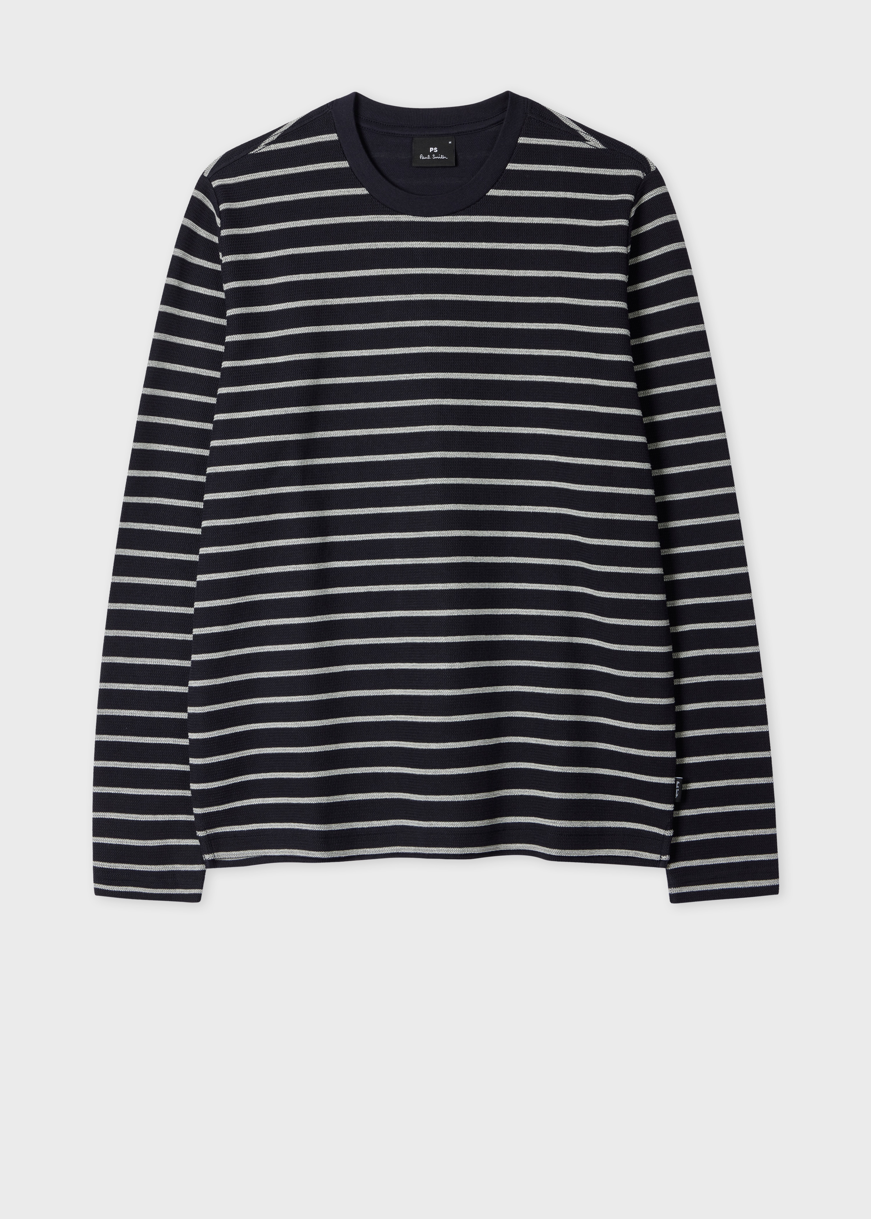 Made from a cotton-blend jersey with a textured finish, this navy crew neck sweatshirt features a classic stripe pattern. Cut for a regular-fit, this versatile sweatshirt is ideal for dressing up or down and is finished with a signature logo tab label. The Fit Regular-Fit is relaxed through the body. Product Code: M2R-221Z-T22398-49