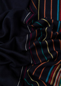 Navy Wool-Silk 'Signature Stripe' Scarf