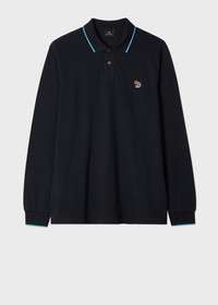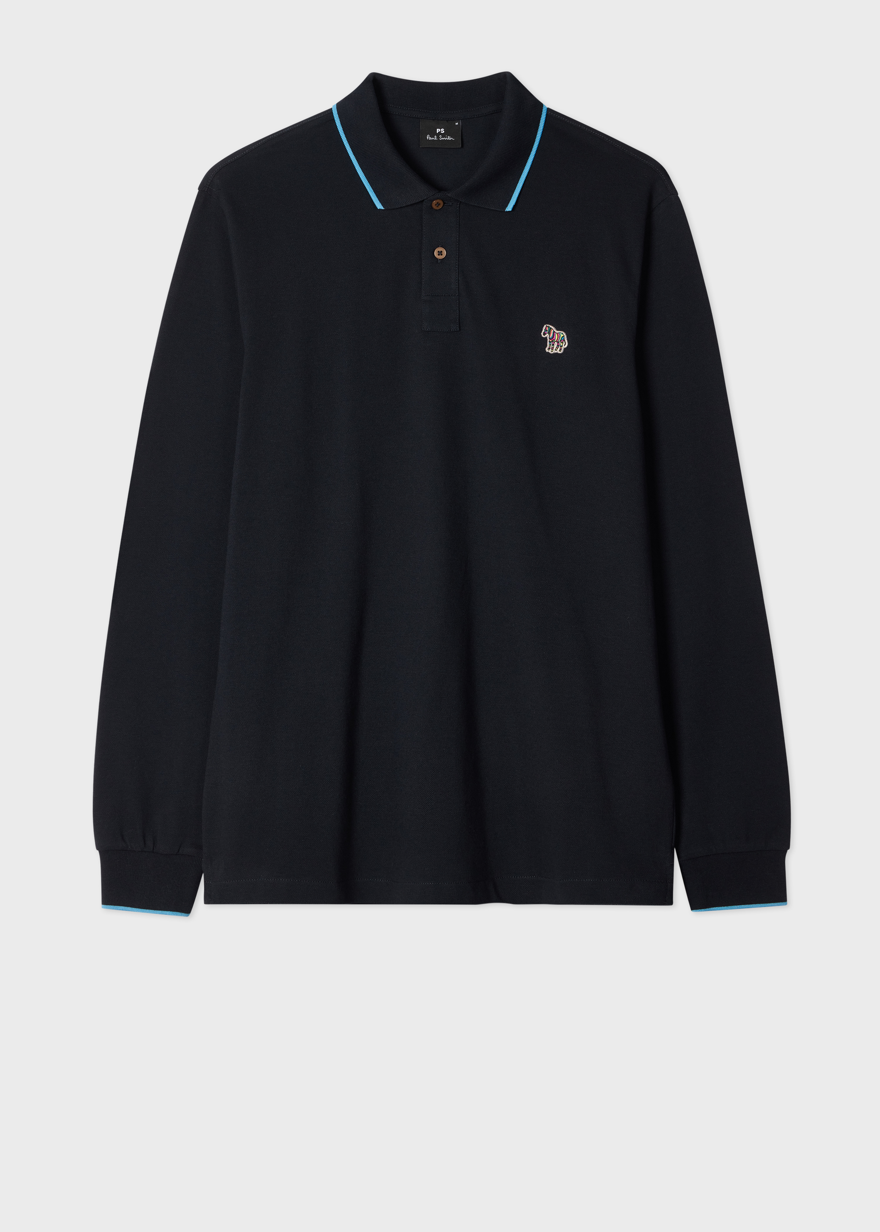 Navy Zebra Logo Long-Sleeve Polo Shirt With Tipping