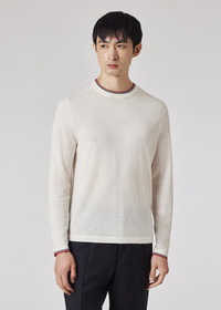 Cut from breathable 100% merino wool, this white crew neck sweater features a contrasting red stripe collar and cuffs. Created to celebrate Manchester United’s rich sporting history, this top is finished with an embroidered 'Red Devil' on the back. 100% Merino Wool Hand wash Product Code: M1R-604X-U01807-01