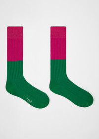 Pink Ribbed Colour Block Socks