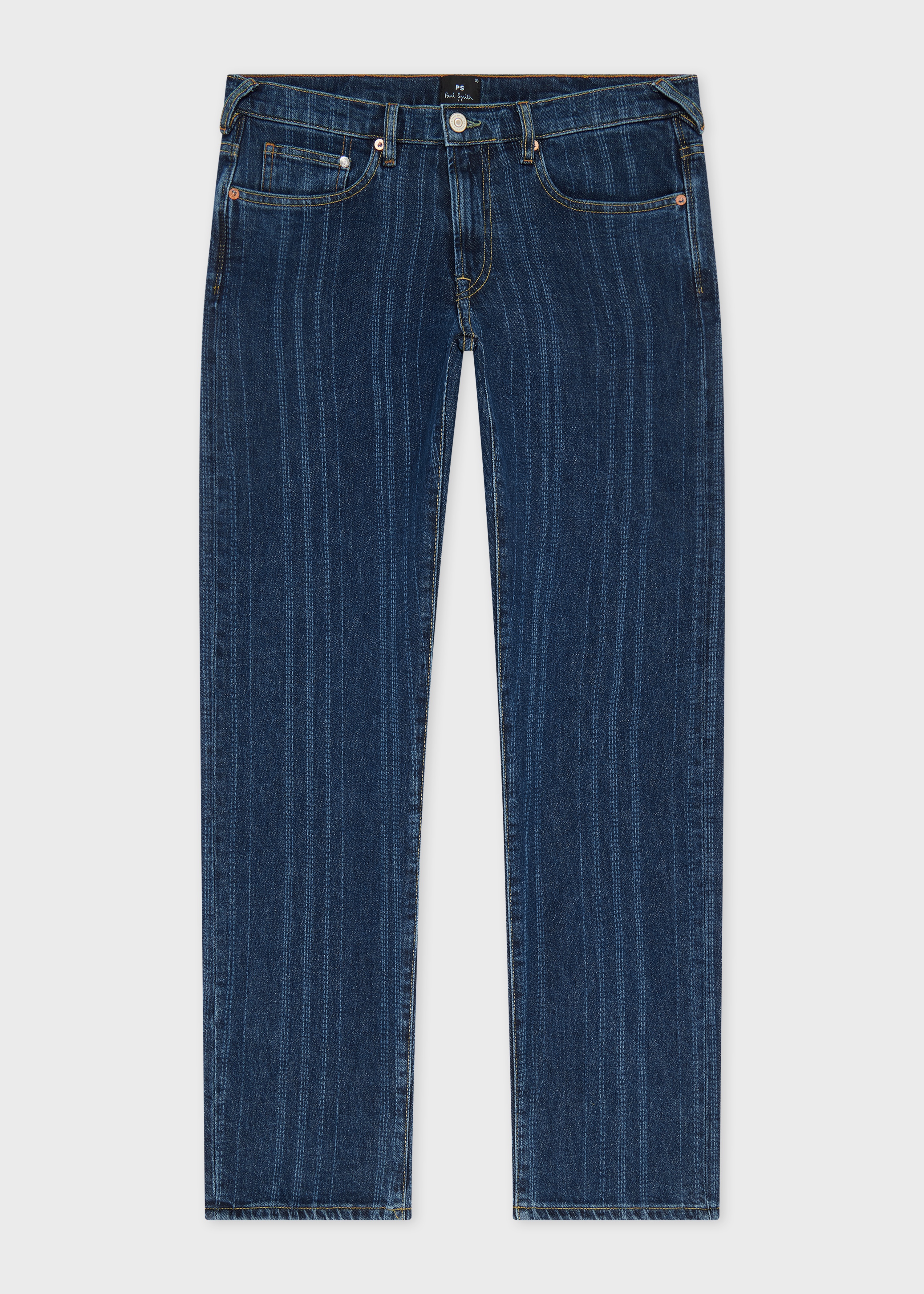 Featuring a unique stripe pattern using a laser technique, these jeans are cut for a relaxed tapered-fit. Made from our 11 1/4oz organic vintage stretch denim, these jeans are finished with an embroidered stripe waistband patch for a signature pop of colour. The Fit - Relaxed Tapered-Fit Product Code: M2R-750ZP-T21841-LAZR