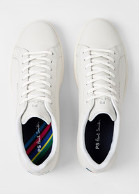 Made from premium leather uppers, these white 'Rex' sneakers feature a classic design with 'Sports Stripe' tape detail at the heel. Complete with tonal rubber cupsoles with side-wall stitching, these sneakers are finished with embossed PS logo on the side. 100% Leather Uppers 100% Rubber Soles Product Code: M2S-REX57-JLEA-01