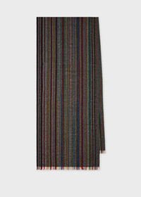 Made from soft merino wool, this scarf features our classic 'Signature Stripe' pattern throughout. Perfect for everyday styling in the transitional months, this scarf can be styled with casual and formal looks. Product Code: M1A-150K-T641-92