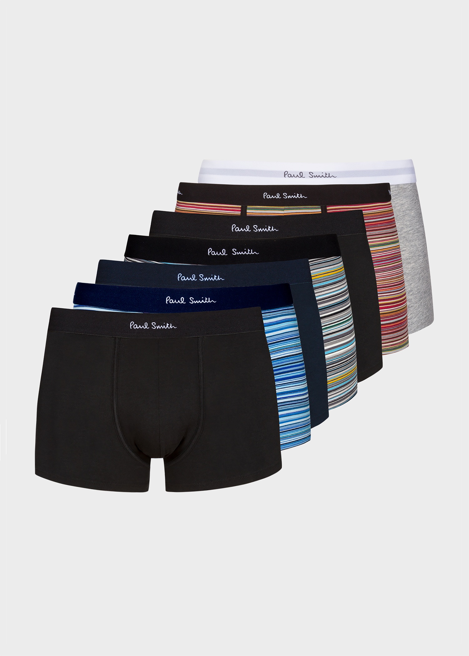 Crafted from a soft organic cotton-blend, this men's pack of seven boxer briefs features three different colour 'Signature Stripe' pairs and four plain block colour pairs. Complete with our Paul Smith signature logo waistband and presented in an 'Artist Stripe' box. 95% Organic Cotton, 5% Elastane Machine washable Product Code: M1A-914-M7PK2-1A