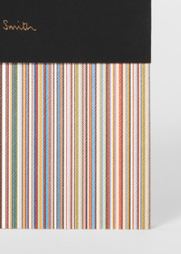 This lined paperback notebook features a Paul Smith signature page footer, black ribbon marker and gold-foil page edging. This classic notebook is finished with a bold, removable black paper card slip across the centre exterior, finished with a gold Paul Smith signature. Size: 21 x 15.3cm 100% Paper, lined Product Code: M1A-BOOKB-ANOTE-92