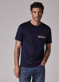 Made in Italy from a premium 100% cotton jersey, this navy crew neck T-shirt features our classic 'Signature Stripe' trim on the chest pocket. 100% Cotton Machine Washable Made in Italy Product Code: M1R-306U-H00088-49