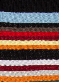 Made in Italy with organically grown cotton, these socks feature a bolder variant of the 'Signature Stripe', and are finished off with a black cuff, heel and toe. One size 70% Cotton, 28% Polyamide, 2% Elastane Machine washable, wash inside out Made in Italy Product Code: M1A-800MO-J249-92